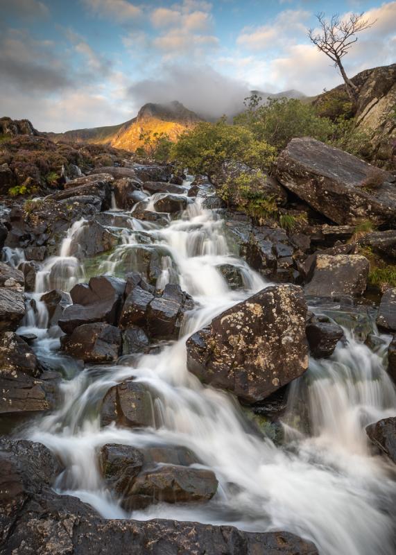 First Light on Y Garn above Afon Idwal Waterfall