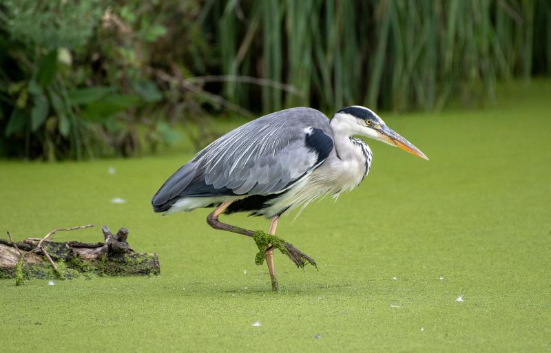 Grey Heron green pond